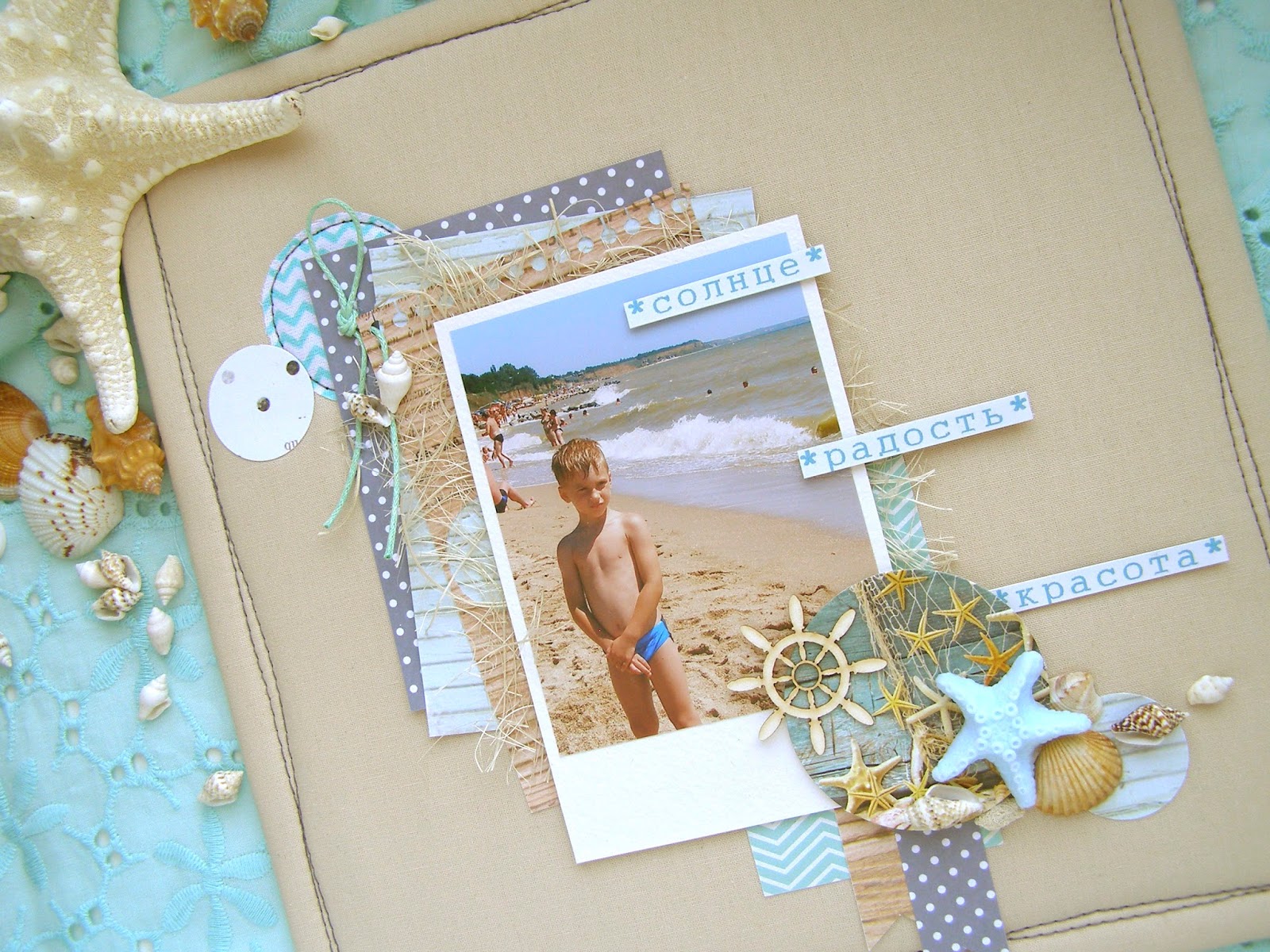 Участвую в задании "Геометрическое" от Woodheart. Сама страничка у меня квадратная, все подложки- прямоугольники, картинка с морскими звёздами круглая и ещё есть тканевый и бумажные кружочки для декора.